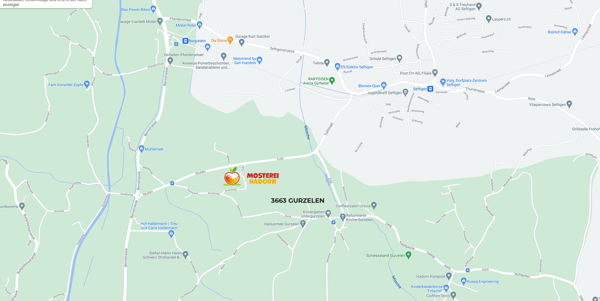 KONTAKT Ihre Nachricht Vorname Nachname EMail Adresse Firma Ihre Nachricht Absenden MOSTEREI HADORNTiefe 97 | 3663 Gurzelen TELEFON033 345 71 23 UNSERE MAILinfo@mosterei-hadorn.ch Bio Apfelsaft von der Mosterei Hadorn